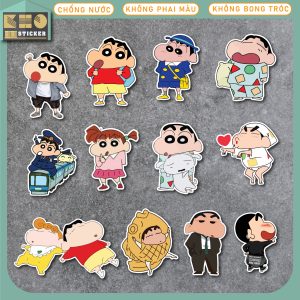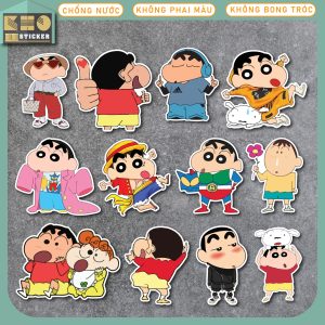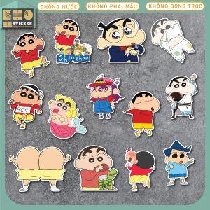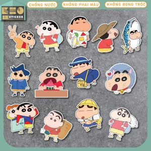 Combo 50 Sticker Shin Cậu Bé Bút Chì chống nước dán mũ bảo hiểm, laptop, điện thoại, guitar, vali,…