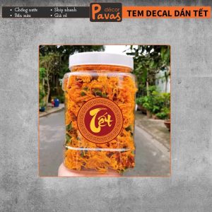 2. Decal dán Tết trang trí hộp mứt, khô gà, bánh kẹo, v.v.. được cán 1 lớp màng chống nước, chống ánh nắng mặt trời, không bị chói dưới ánh nắng mặt trời, có thể chịu được thời tiết mưa nắng.